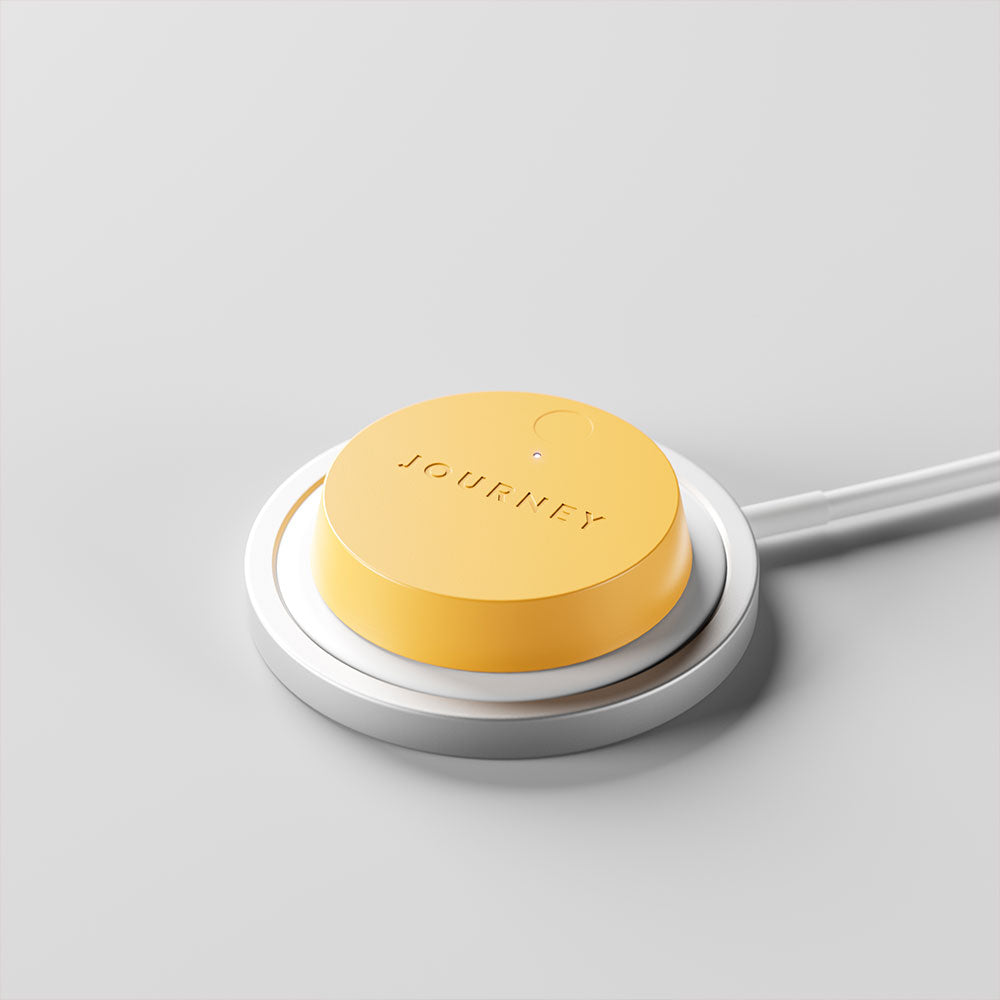 You can dislodge the tracker puck from your bottle lid with a light push. Simply remove the tracker from the bottle and place it on your wireless charger.